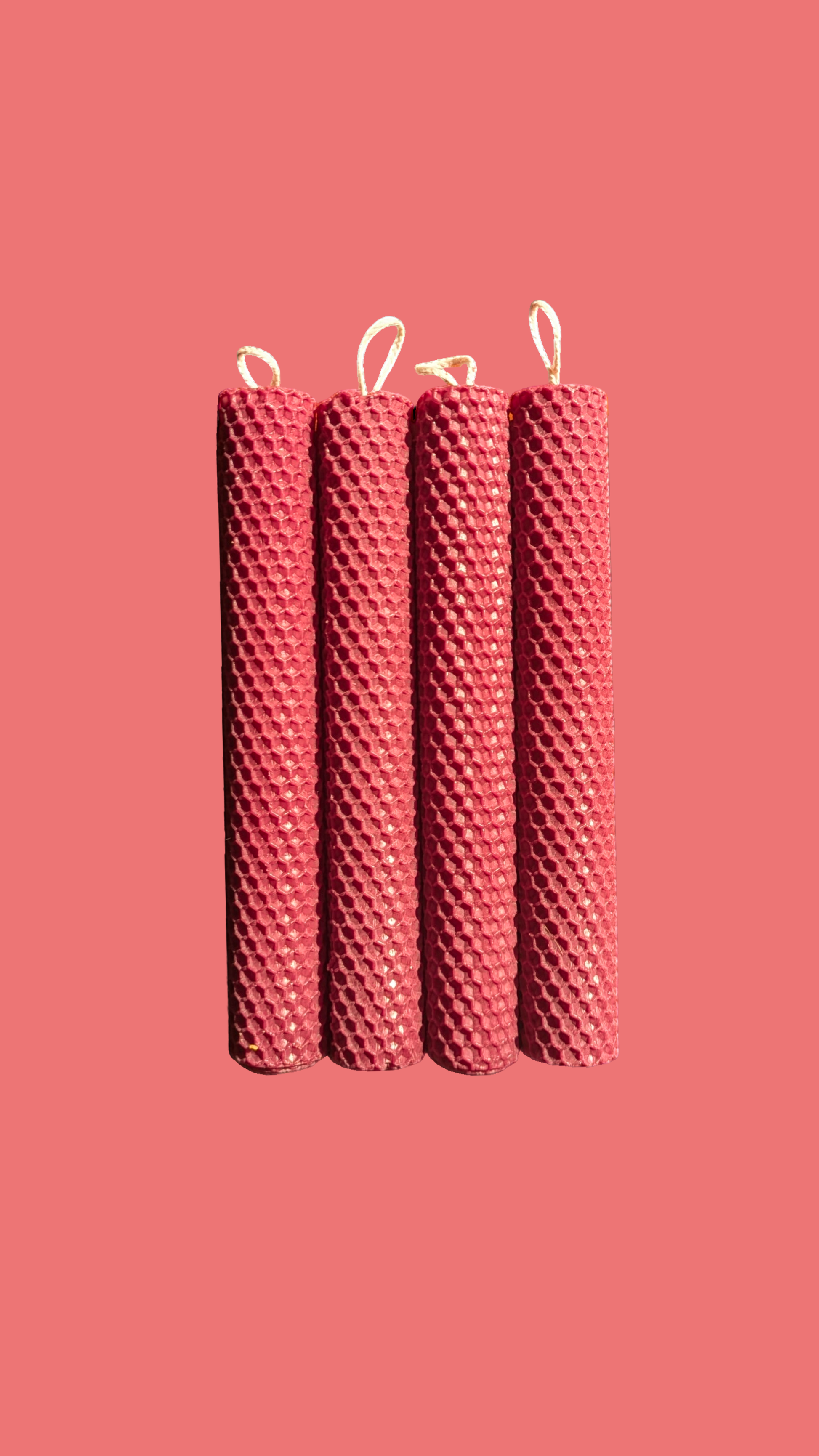 Handgefertigte, österfarbene Kerze aus reinem Bienenwachs.