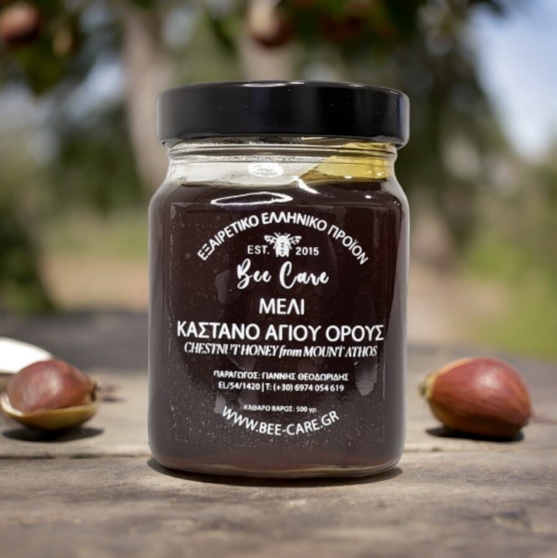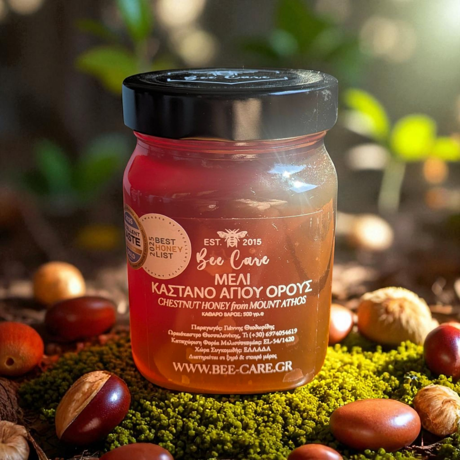 Από τα παρθένα δάση του Αγίου Όρους σας φέρνουμε στο πιάτο σας ένα μοναδικά ξεχωριστό μέλι με 96% κάστανο. Το μέλι με τα λιγότερα σάκχαρα.