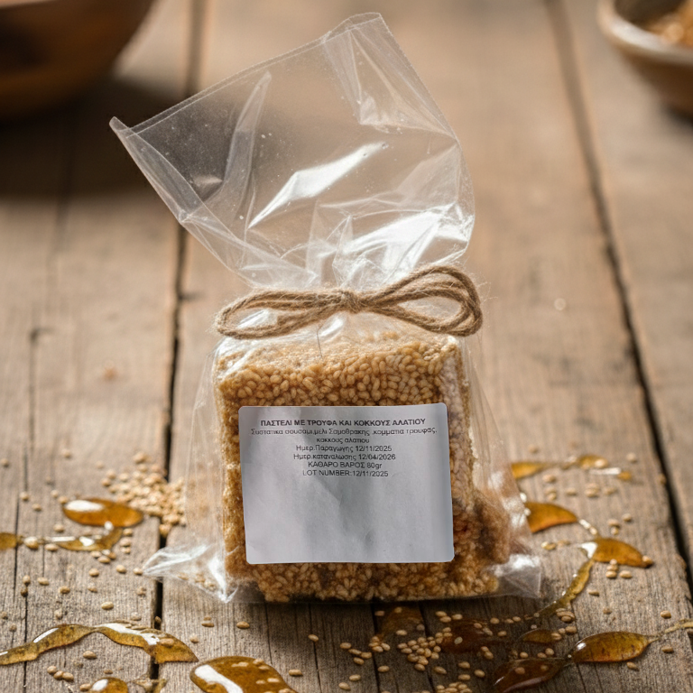 Ένα μοναδικό χειροποίητο προϊόν με εξαιρετικές πρώτες ύλες όπως αλάτι, τρούφα, σουσάμι και αγνό παρθένο μέλι, που σας γεμίζει ενέργεια για όλη την ημέρα.