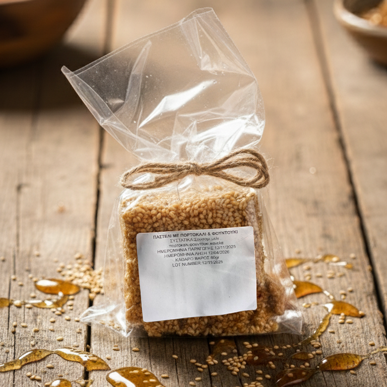 Ένα μοναδικό κλασικό χειροποίητο προϊόν με εξαιρετικές πρώτες ύλες όπως πορτοκάλι, φουντούκια, σουσάμι και αγνό παρθένο μέλι, που σας γεμίζει ενέργεια για όλη την ημέρα.